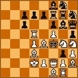 A világos félkötés feloldódva átkerül az a6-f1 átlóra, aztán megint feloldódik, s közben gyönyörködhetünk a világos lépések felcserélődésében! Sötét a félkötésből ellépő világos báb helyén oldja fel a kötésbe került másik világos bábot, s mindezt megduplázva, plusz Umnov I.-téma... |